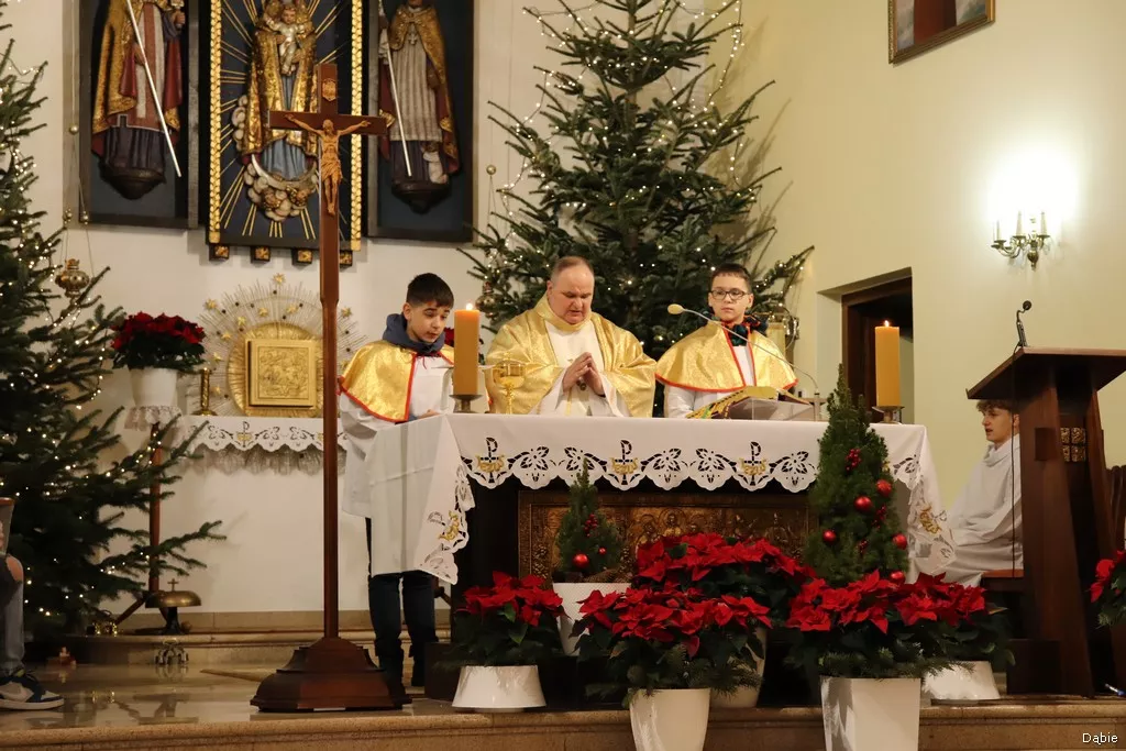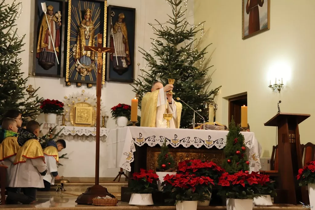 W niezwykłą Noc Narodzenia Pańskiego nasza wspólnota parafialna zgromadziła się na tradycyjnej Pasterce, aby wspólnie przeżywać radość z przyjścia Zbawiciela. Eucharystia rozpoczęła się o północy. Pasterka to wyjątkowy moment, który łączy nas w wierze i przypomina o miłości Boga, objawionej w tajemnicy narodzin Jezusa Chrystusa. Dziękujemy wszystkim za liczny udział i życzymy, aby ten święty czas przyniósł pokój, nadzieję i radość w sercach każdego z Was.