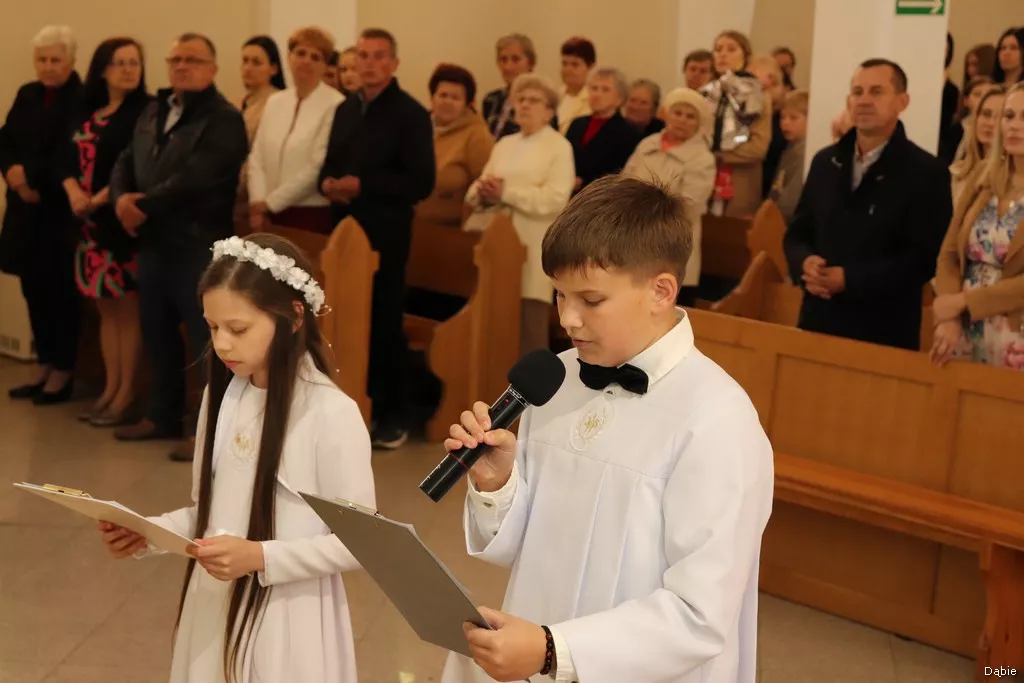 W niedzielę, 11 maja, grupa dzieci, która przed rokiem przyjęła po raz pierwszy Pana Jezusa w Komunii świętej, obchodziła swoją rocznicę. Spotkaliśmy się na Eucharystii, by razem z całą wspólnotą parafialną dziękować za miłość Bożą ukazaną nam przez to, że Jezus oddał za nas swoje życie. On jednak żyje, bo zmartwychwstał i daje nam siebie w Komunii świętej. I zaprasza nas, byśmy tę Jego miłość dawali teraz innym.